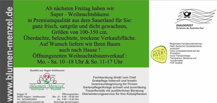 Im Januar und Februar bleibt das Geschäft geschlossen, aber selbstverständlich fürhren wir auch dann ihre Aufträge aus.